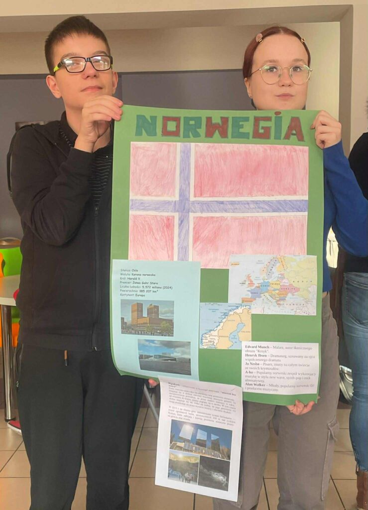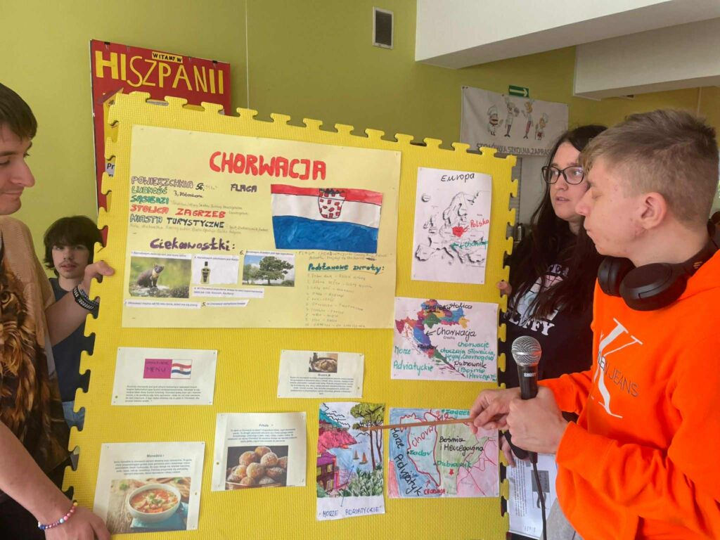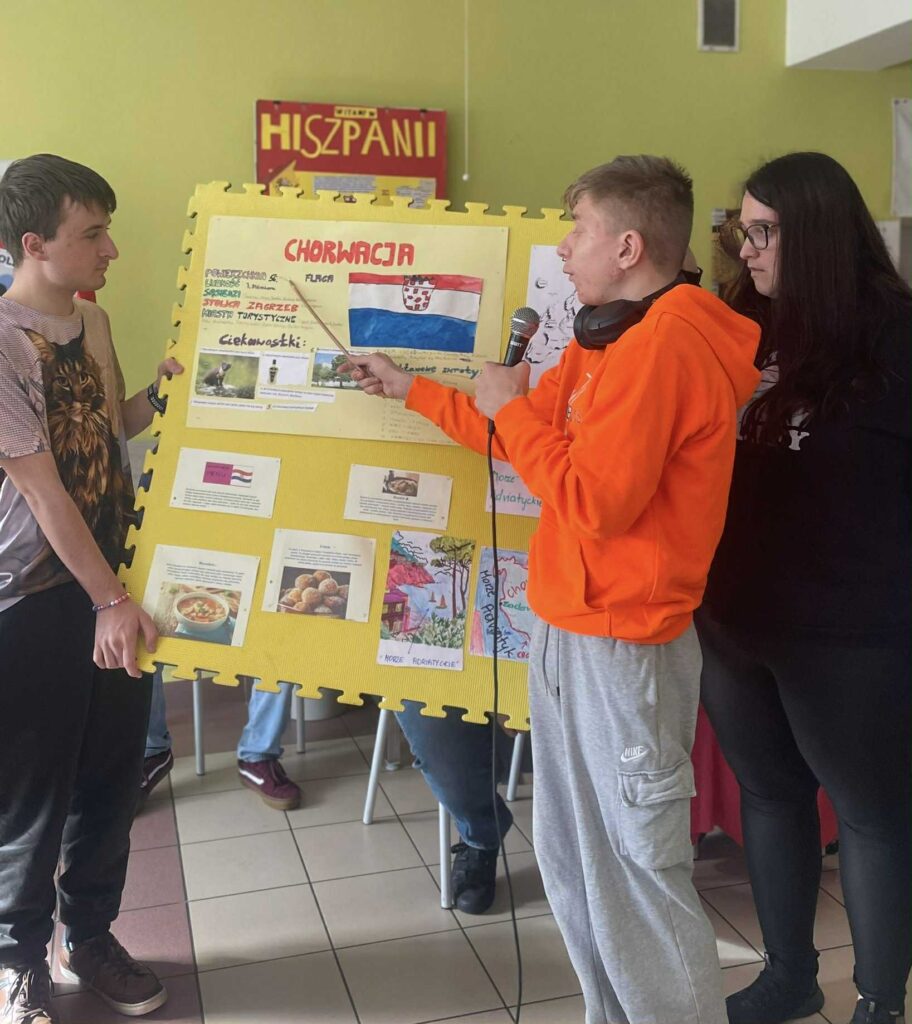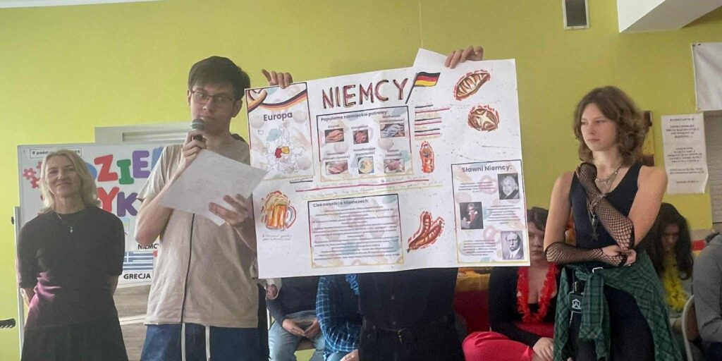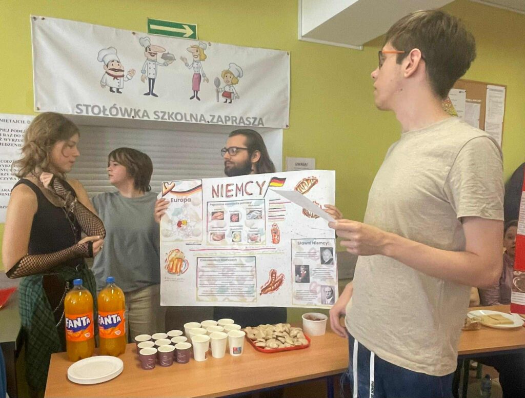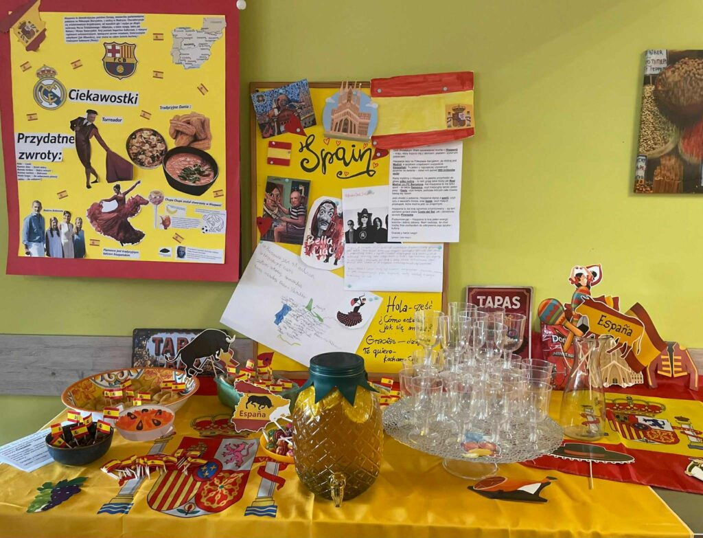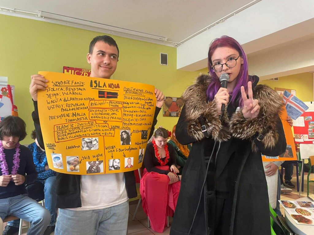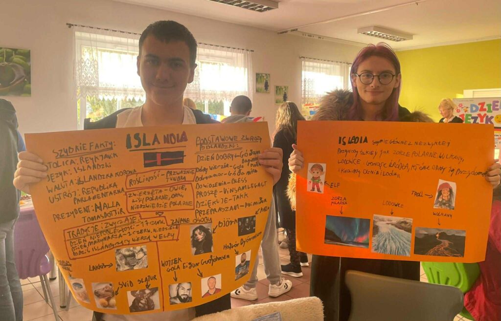 W dniu 9.10 obchodziliśmy w naszej szkole Europejski Dzień Języków, którego celem było propagowanie nauki języków obcych oraz poznanie kultury i tradycji różnych krajów europejskich.W wydarzeniu wzięli udział uczniowie z 18 klas LO. Zadaniem uczniów było przygotowanie prezentacji na temat wylosowanych państw z podstawowymi informacjami z zakresu geografii, języka, znanych osób i ciekawych faktów według ustalonych kryteriów w regulaminie konkursu. Uczniowie wykazali się dużą pomysłowością, zdolnościami plastycznymi, aktorskimi i kulinarnymi.W wyniku głosowania nagrodę publiczności uczniowie przyznali:KLASOM 1B i 4D za prezentację Hiszpanii oraz JANKOWI ALANKIEWICZOW z klasy 3D prezentującemu Portugalię.Nauczyciele uznali prezentację Islandii w wykonaniu uczniów z KLASY 2D za najlepszą, a wyróżnionym prezenterem został uczeń klasy 1E – GRZEGORZ RHODE.Gratulacje dla zwycięzców i wszystkich uczniów za udział!Podziękowania dla nauczycieli za zaangażowanie i współpracę!Fotorelacja wkrótce🤓😃.