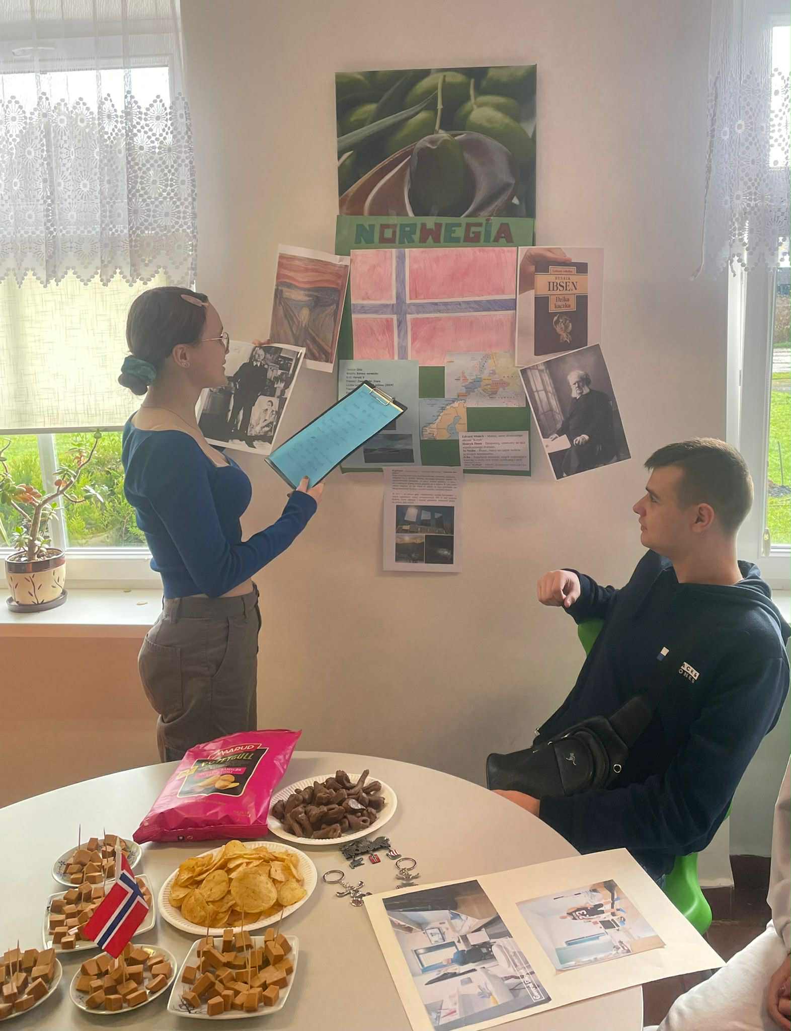 W dniu 9.10 obchodziliśmy w naszej szkole Europejski Dzień Języków, którego celem było propagowanie nauki języków obcych oraz poznanie kultury i tradycji różnych krajów europejskich.W wydarzeniu wzięli udział uczniowie z 18 klas LO. Zadaniem uczniów było przygotowanie prezentacji na temat wylosowanych państw z podstawowymi informacjami z zakresu geografii, języka, znanych osób i ciekawych faktów według ustalonych kryteriów w regulaminie konkursu. Uczniowie wykazali się dużą pomysłowością, zdolnościami plastycznymi, aktorskimi i kulinarnymi.W wyniku głosowania nagrodę publiczności uczniowie przyznali:KLASOM 1B i 4D za prezentację Hiszpanii oraz JANKOWI ALANKIEWICZOW z klasy 3D prezentującemu Portugalię.Nauczyciele uznali prezentację Islandii w wykonaniu uczniów z KLASY 2D za najlepszą, a wyróżnionym prezenterem został uczeń klasy 1E – GRZEGORZ RHODE.Gratulacje dla zwycięzców i wszystkich uczniów za udział!Podziękowania dla nauczycieli za zaangażowanie i współpracę!Fotorelacja wkrótce🤓😃.